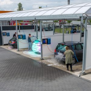 Voordelige carwashoplossing zonder overkapping, ideaal voor locaties met beperkte ruimte.